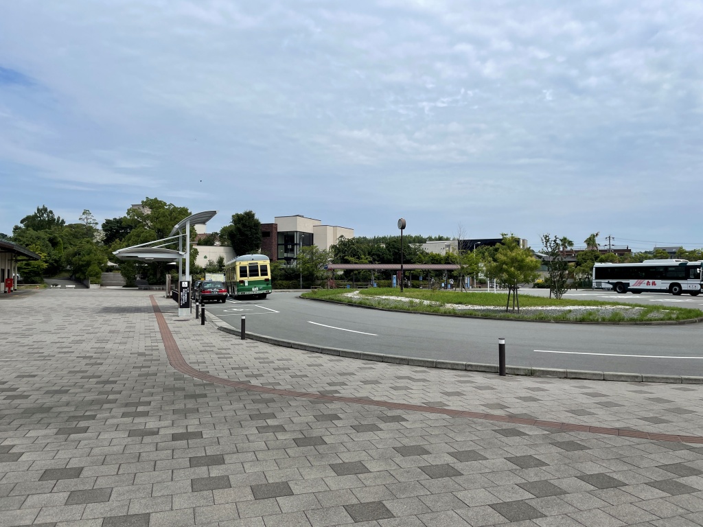 9時30分頃到着した五十鈴川駅前です。 何もないように見えますが、正面は美術館です。