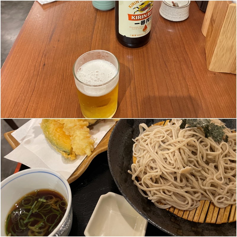 特急ひのとりで帰るまでの空き時間にビールと天ざるそばで時間稼ぎ