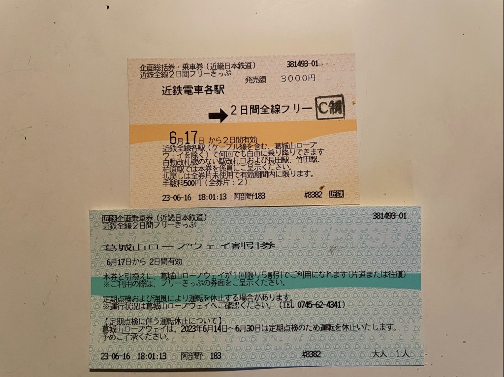 前日発売ですが2日間 近鉄全線乗り放題です