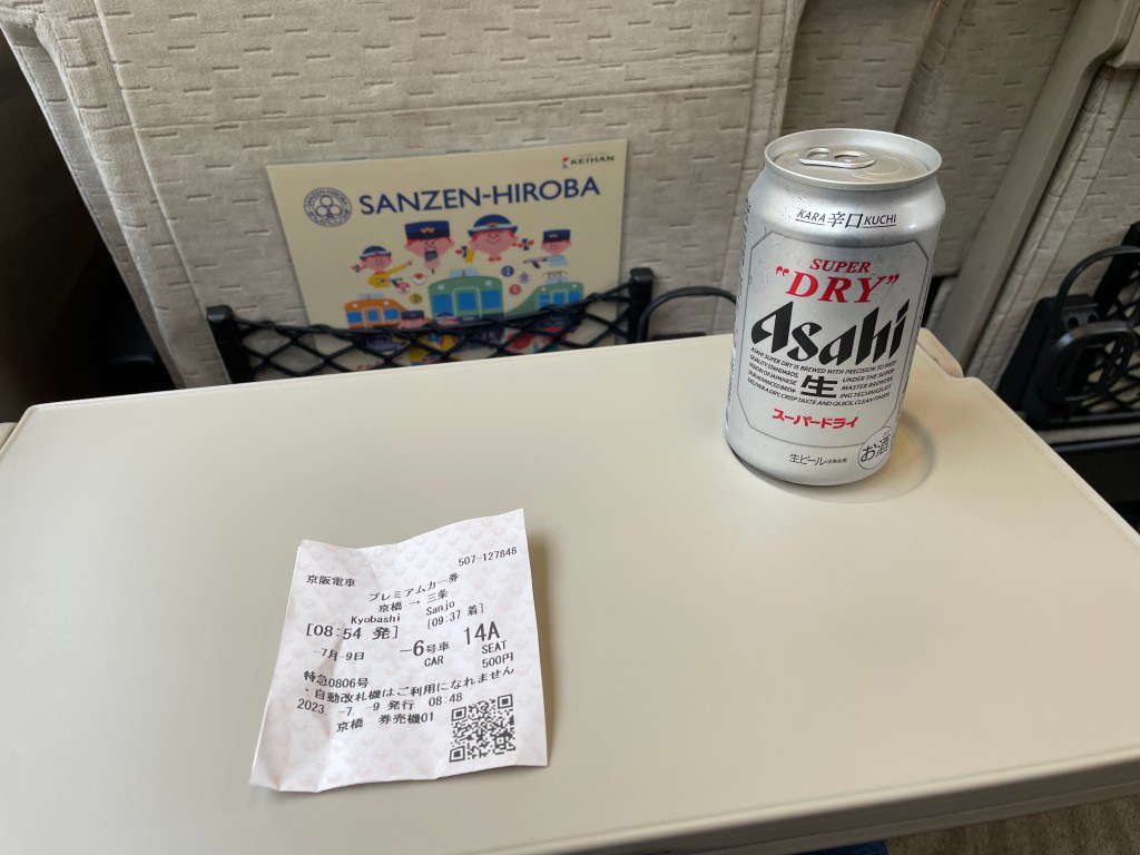 午前8時54分京橋駅発の出町柳行特急プレミアムカー指定席に乗って目的地の最寄り駅の手前『三条』に向かいました。