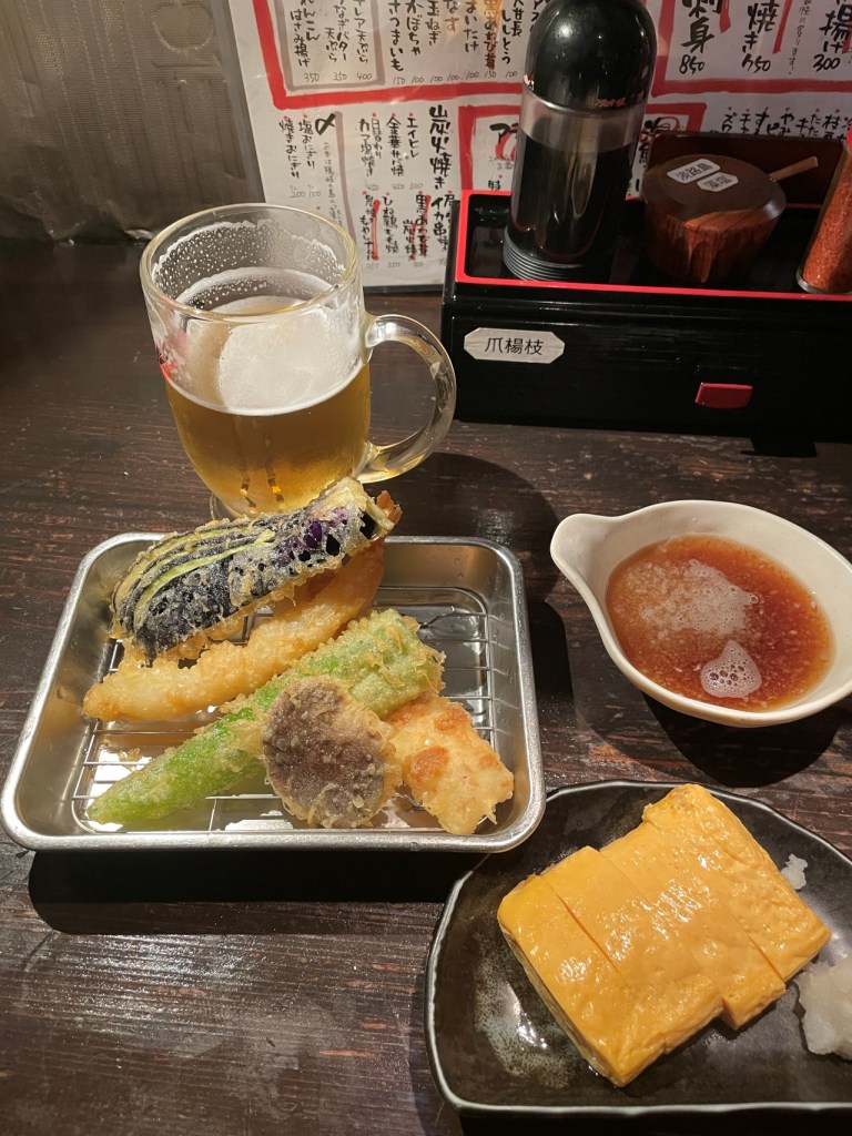 ここは、私にとっては安定のあたりや食堂。天ぷら5種盛とだし巻きと生ビール